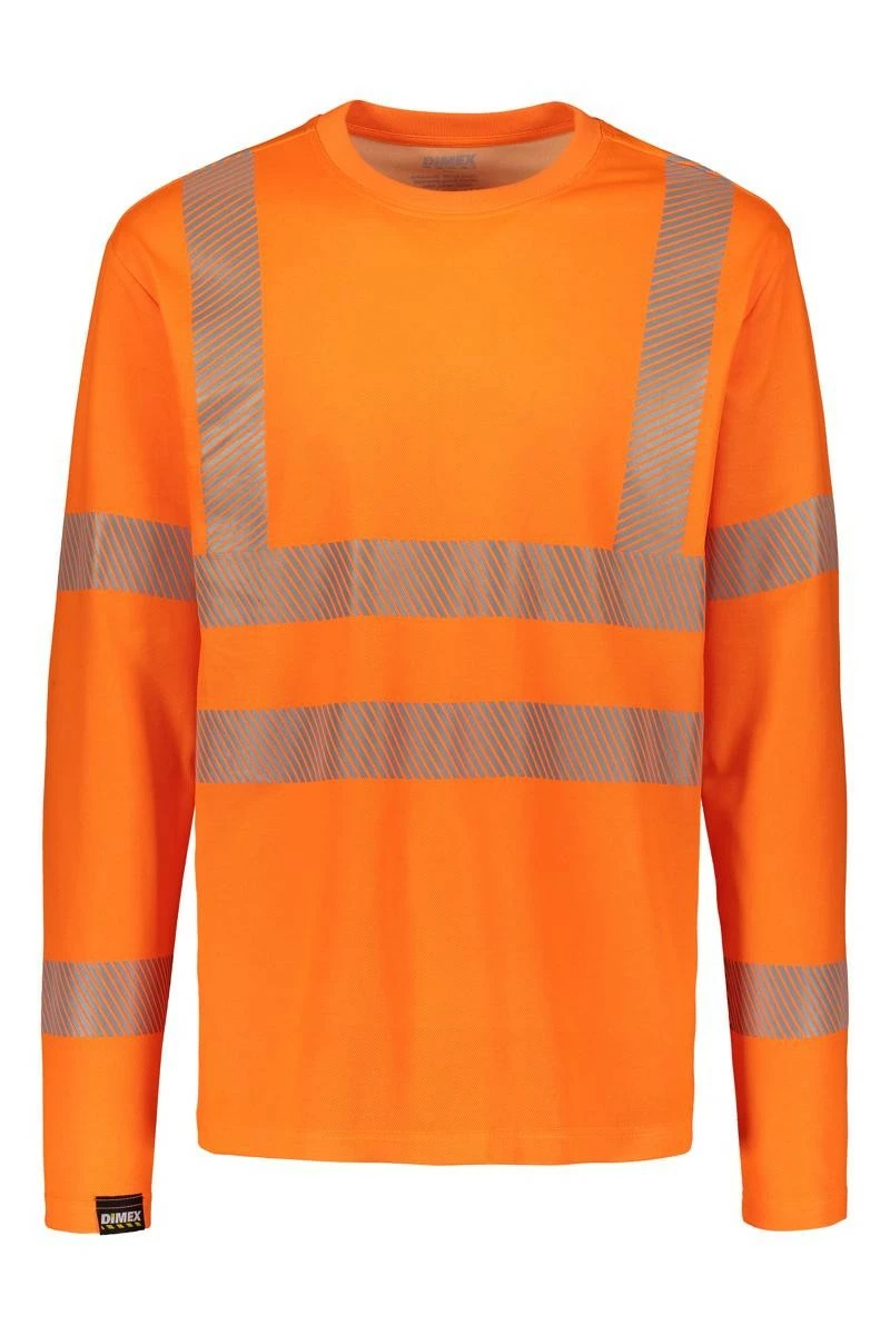 Dimex pitkähihainen turva-työpaita on kevyt ja hyvin hengittävä paita vaativiin työympäristöihin. Huomio-oranssi väritys ja reilut heijastinnauhat lisäävät turvallisuutta merkittävästi.