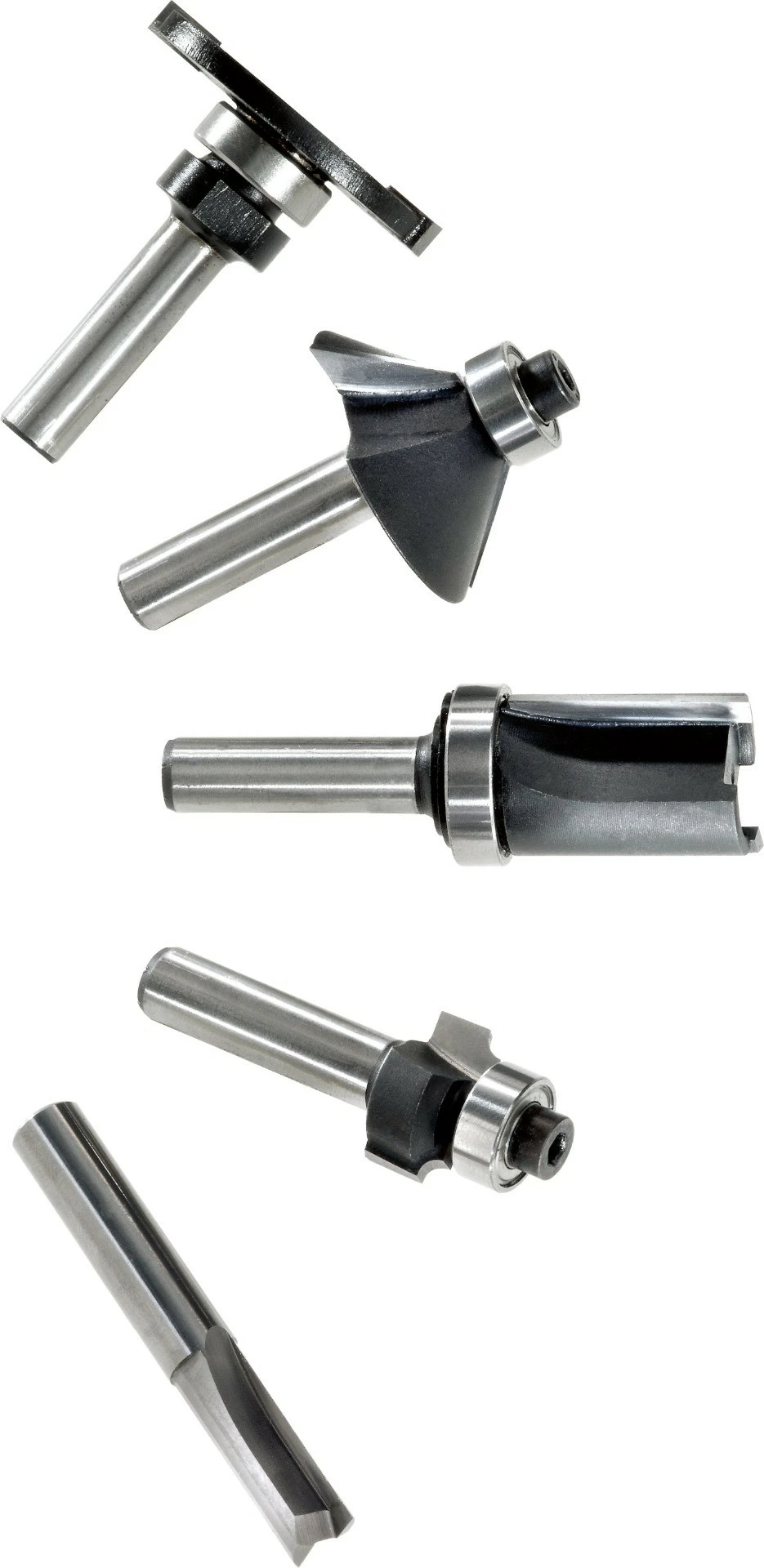 reunajyrsinterä HW D12,7/NL25 KL (491027), tapitusporanterä HW D5 x 30 Z (491066), urajyrsinterä HW D10/20 jossa poranterä (490959), urajyrsinterä HW D18/30 jossa poraussärmä (490969), pyöristysjyrsinterä HW D16,7/R2 KL (491009), pyöristysjyrsinterä HW D25,5 R6,3 KL (491013), pyöristysjyrsinterä HW D31,7/R9,5 KL (491015), viistejyrsinterä HW D36/45Grad KL (491025), reunaurajyrsinterä HW D40 x 4 (491059), sinkkausjyrsinterä HW D 13,8/ 15° (490992), Pahvissa