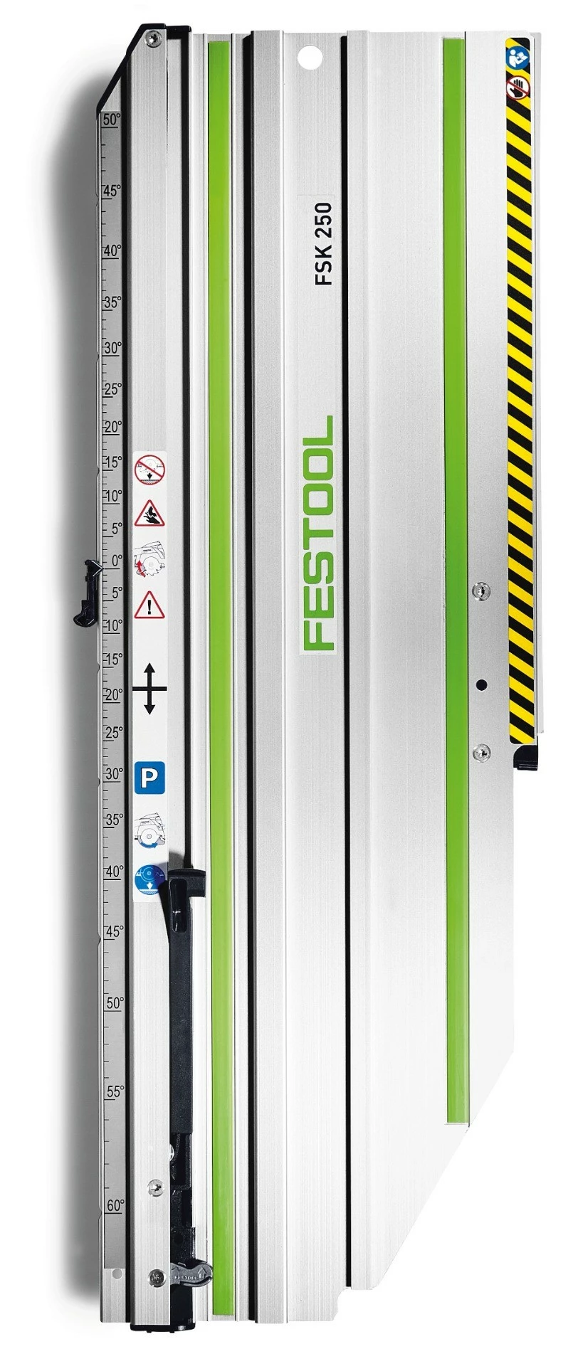 - Luotettava kiinnitys työkappaleisiin ruuvipuristimella, jonka voi asentaa kätevästi katkaisukiskon uraan