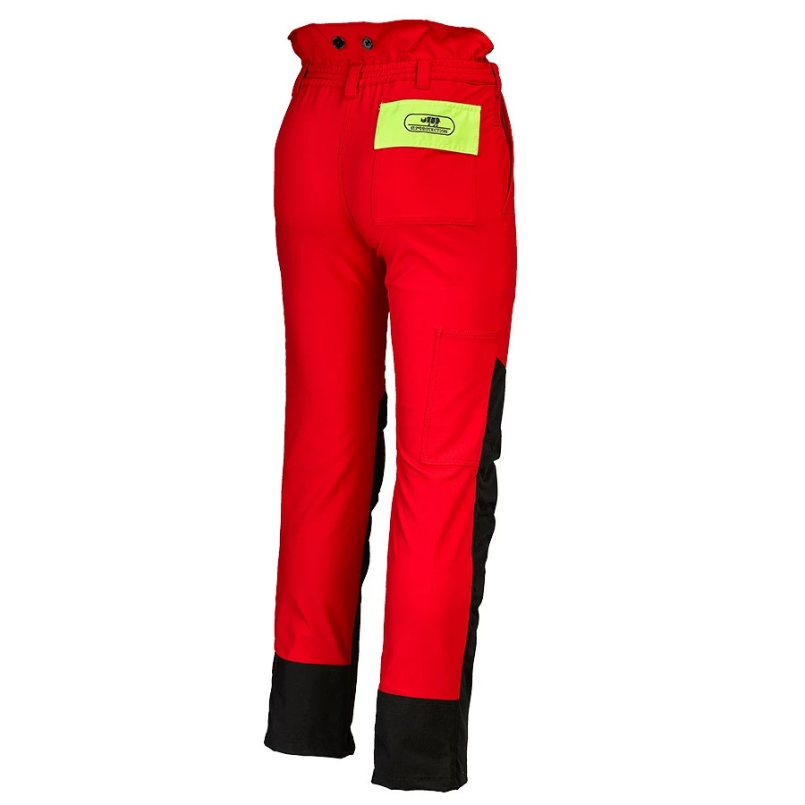 Standardin EN 381-5, viiltosuojaluokka 1, tyyppi A mukaiset viiltosuojahousut.