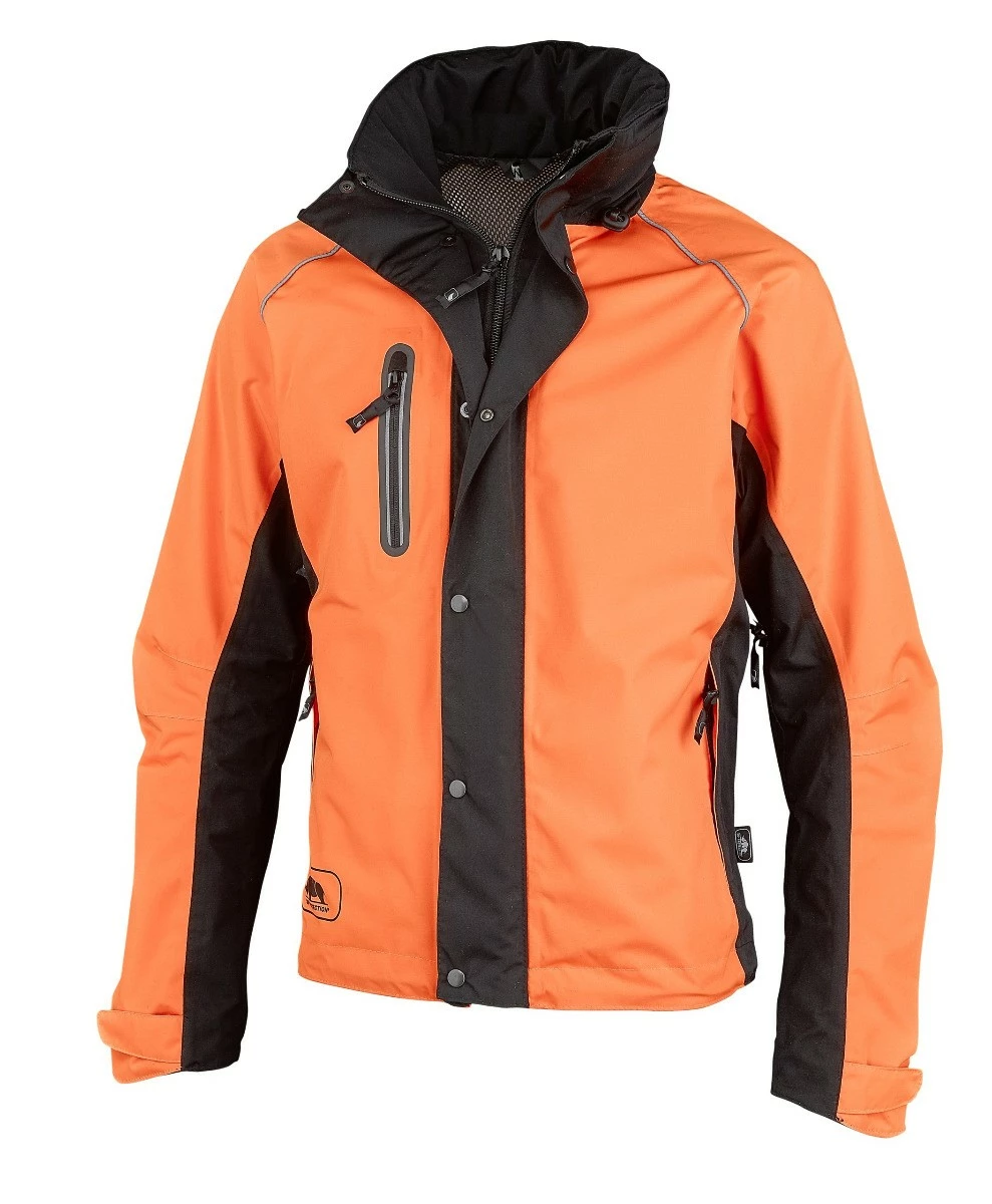 SIP Keiu- sadetakki on täysin vedenpitävä ja hengittävä. Huippuluokan hengittävyys tekee takista miellyttävän käyttää. Takki on ohutta kangasta, moderni ja tyylikäs. Loistepintainen oranssi väri varmistaa, että näyt päivänvalossa sekä yöllä. Takin yksityiskohdat kuten tuuletusta helpottavat vetoketjut, kauluksessa säilytettävä huppu sekä syvät taskut tekevät takista toimivan ratkaisun. Takin pidennetty takaosa pitää huolen selkäpuolen suojauksesta.