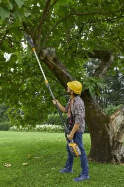 Unohda tikkaat ja mahdollinen vaarallinen kiipeily puissa. Kevyt, johdoton SMT 500 AE Kit -puutarhan monitoimilaite on korkealle ylettyvä akkukäyttöinen pensasleikkuri ja oksasaha.